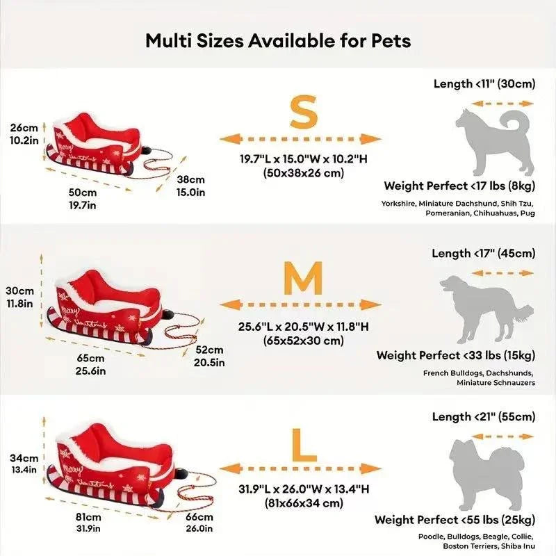 Christmas Sleigh Plush Cozy Dog Bed