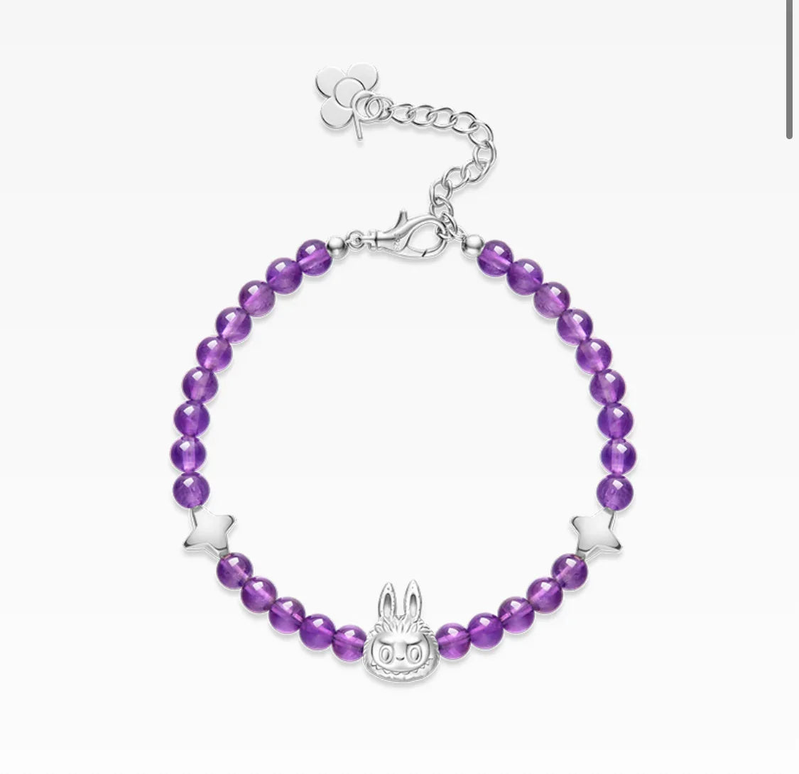2. LABUBU Amethyst Crystal Bracelet – 925 Sterling Silver with Stainless Steel Wire