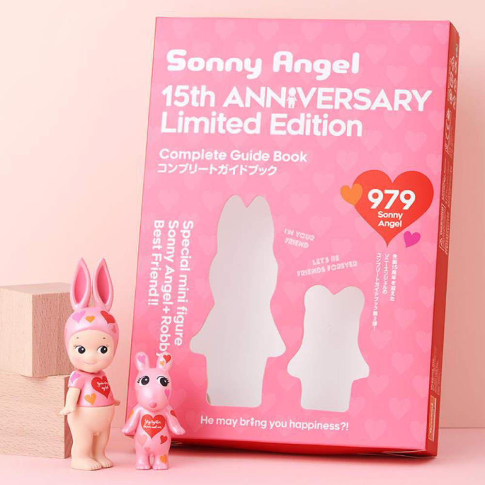 In addition to the expansive guidebook content, the 15th Anniversary Limited Edition includes two exclusive mini figures — a Sonny Angel figure and a Robby Angel companion — designed specifically to commemorate the anniversary celebration. These figures often feature signature elements (like rabbit headgear) and collectible detailing that honor the special occasion, making them standout pieces in any collection.